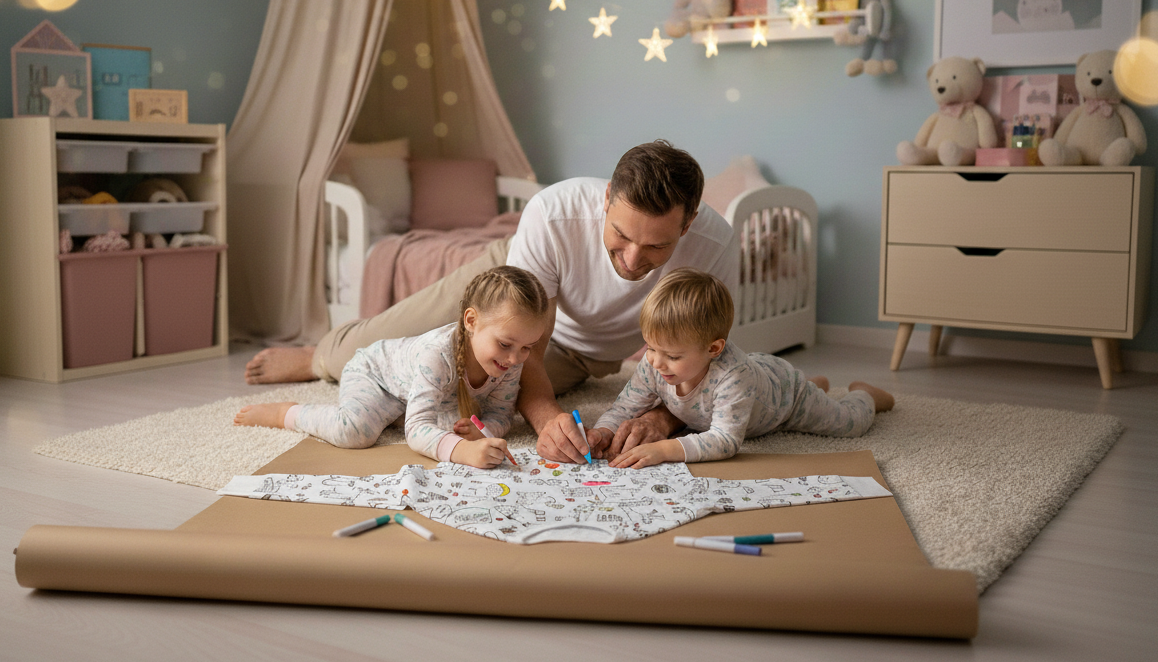 Votre enfant colorie directement sur son pyjama, laisse sécher quelques minutes, puis peut le porter fièrement avant le coucher 💫