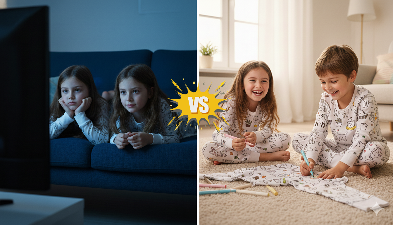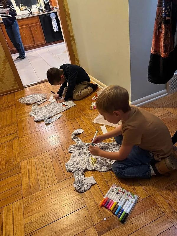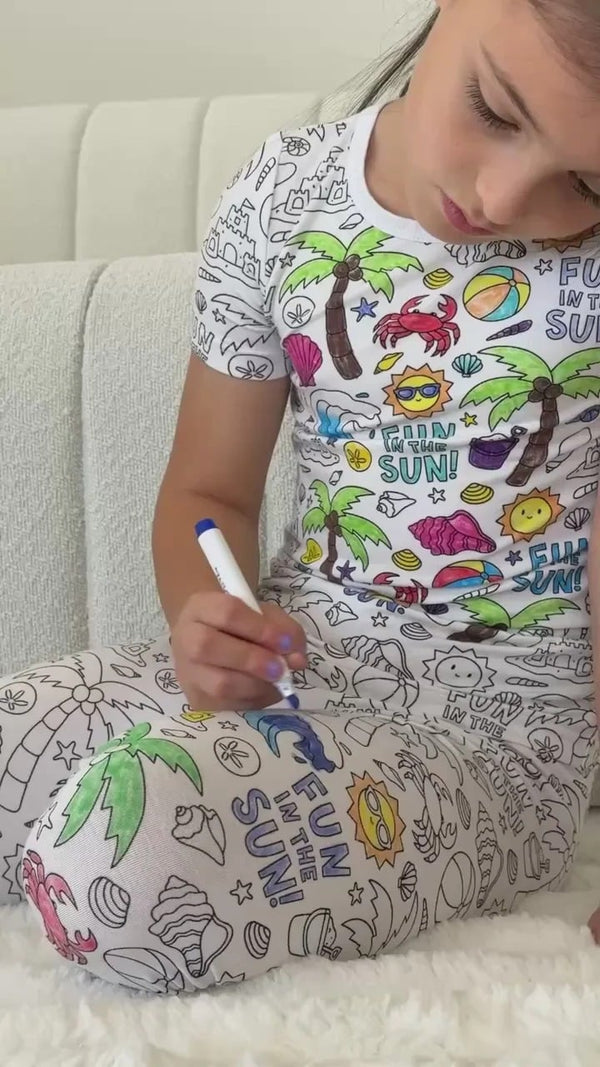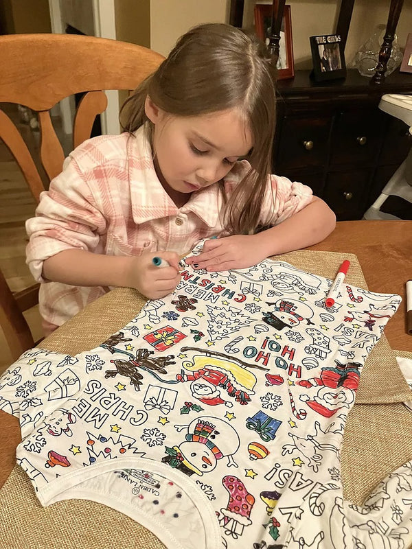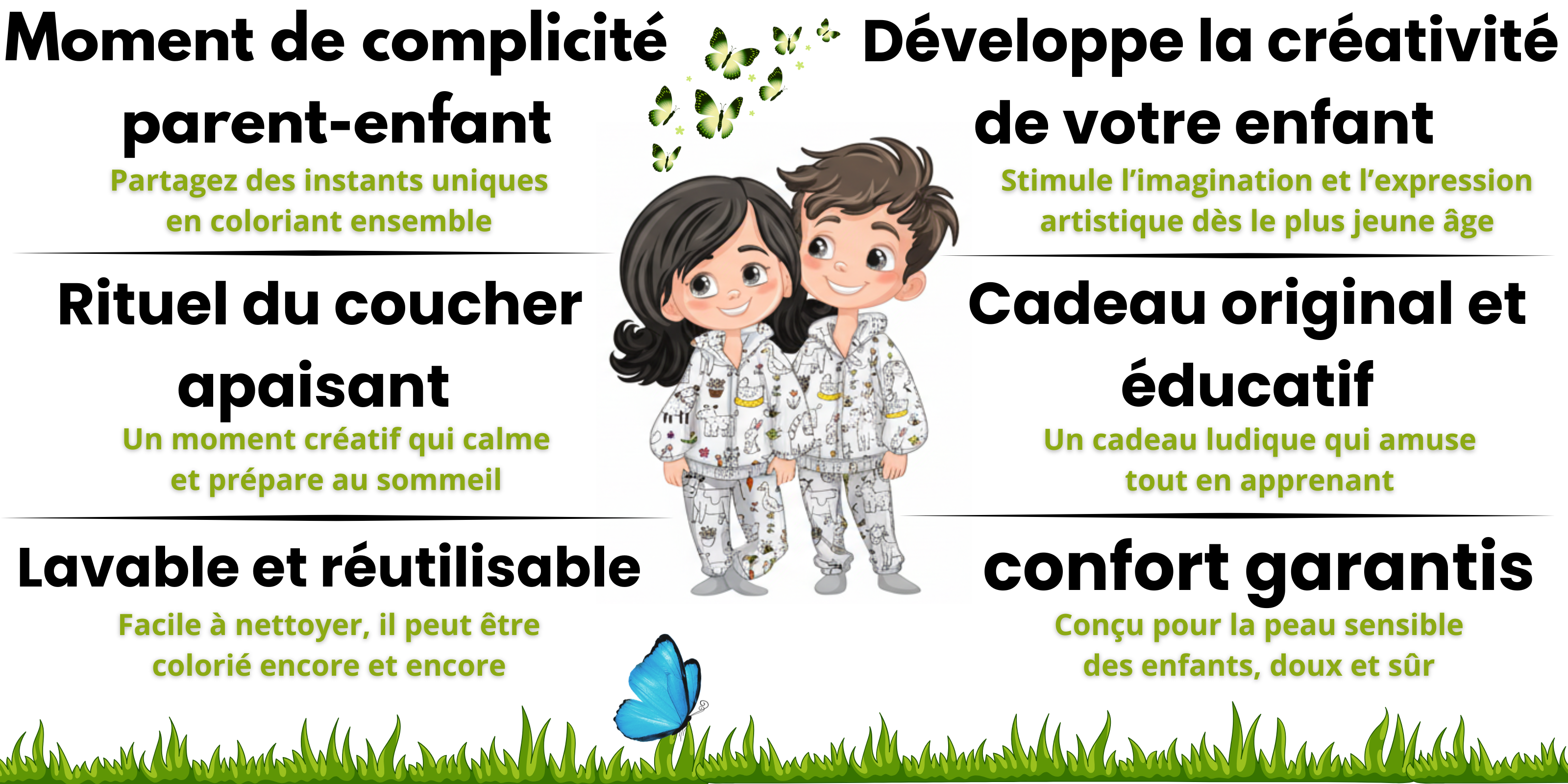 Votre enfant colorie directement sur son pyjama, laisse sécher quelques minutes, puis peut le porter fièrement avant le coucher 💫